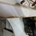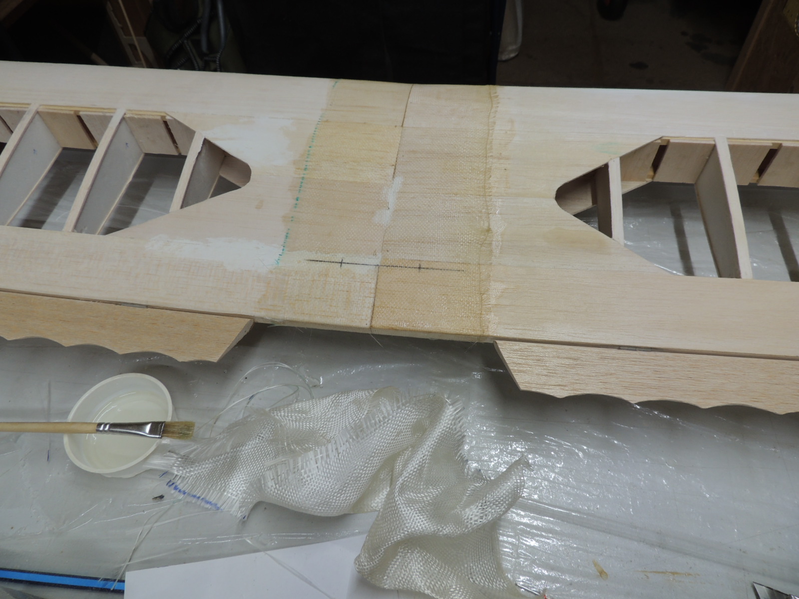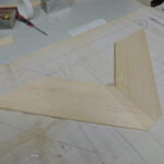Einen original Bauplan lieh mir mein Freund Hans Peter. Nach erster Sichtung war klar, dass der Bau der Tragfläche für mich in dieser Ausführung (Jedelskybauweise) nicht machbar ist. Hier werden Profilbretter, die gleichermaßen Nasenleiste und vordere Beplankung sowie Holme in fast 10mm Stärke bilden, benutzt. Dementsprechend sind die Rippen gezeichnet. Da im Plan aber ein vollständiges Profil abgebildet ist, konnte ich dieses ohne Beplankung nachzeichnen und eine Tragfläche in konventioneller Holm-Rippenbauweise fertigen. Zu erwähnen ist hier nur, dass ich die Rippen aus 6mm Depron geschnitten habe – das geht sehr schnell, ist günstig und leicht. Ansonsten besteht der Rest aus Holz bis auf das CFK- Fahrwerk, die Motorhaube (Joghurtbecher) sowie die Anlenkungsteile und die Elektronik.