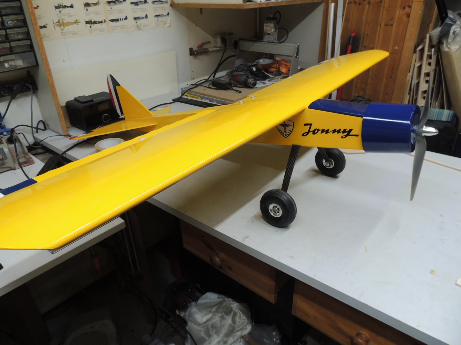 Zu meiner Jugendzeit, also in den 1980ern, besaß ich einen gut fliegenden Schulterdecker namens Jonny aus dem Hause WIK-Modelle, bestückt mit einem 6,5 ccm Methanol-Motor. Damit ging das Modell recht gut, trotz etwas Blei im Hintern und etwa 2700g Abflugmasse bei ca. 150cm Spannweite.