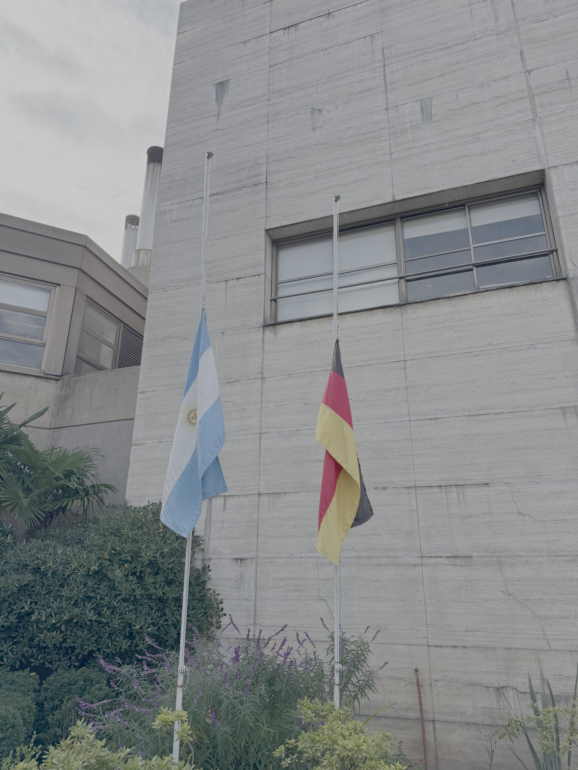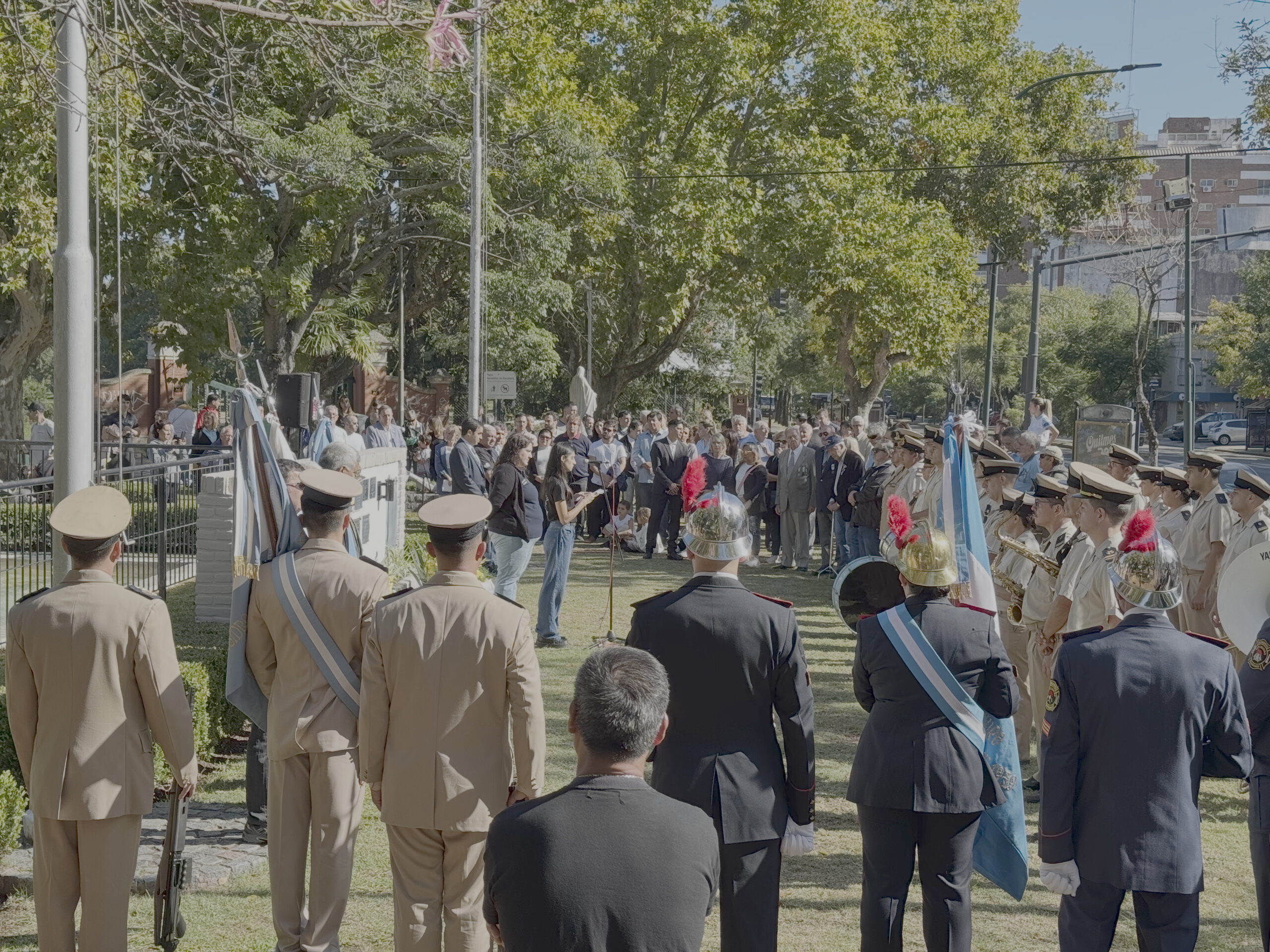 Am Plaza Alemania, dem deutschen Platz in Buenos Aires, trifft sich die deutsche Gemeinde zu den Feierlichkeiten unseres Nationalfeiertags. Am Denkmal finden sich die Wappen der deutschen Bundesländer. Man beachte die herausfordernde Schreibung des Bundeslandes mit der Hauptstadt Stuttgart.