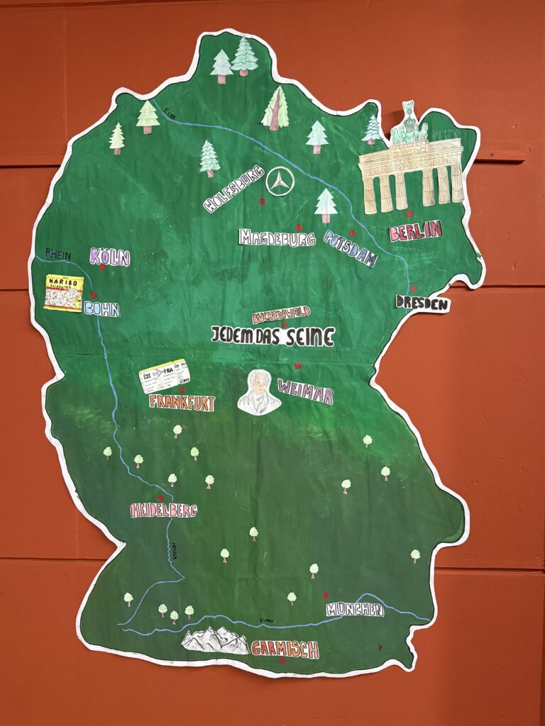 Die Ziele der Deutschlandfahrt der Abschlussklassen, die jedes Jahr kurz vor und in den Winterferien stattfindet, wurden in dieser Karte kurz und bündig dargestellt. Das Saarland kommt leider nicht vor.