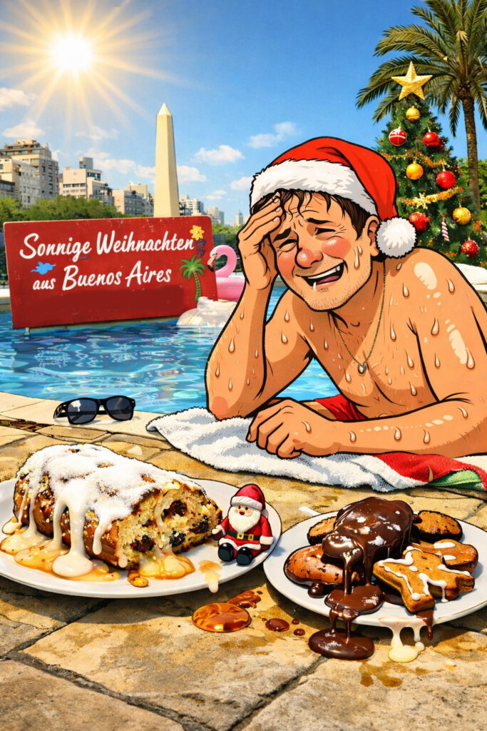 Auf der Abiturfeier 2025 überraschte der Schulchor mit weihnachtlichem Gesang. Am Wochenende zuvor sangen wir bereits schwitzend „Leise rieselt der Schnee“ auf dem Weihnachtsbazar der Deutschen Gemeinde bei über 30 Grad im Schatten. Weihnachten in Argentinien bleibt ungewöhnlich.