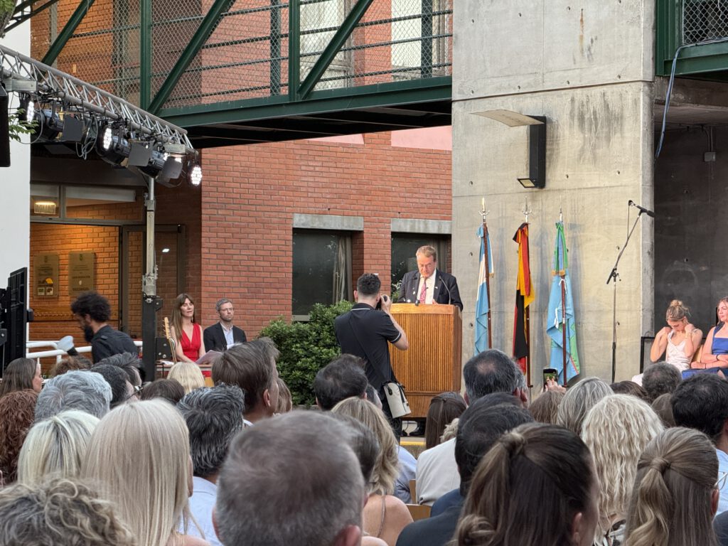 In diesem Jahr war ein weiteres Mal der Botschafter der Bundesrepublik Deutschland in Argentinien, Herr Dieter Lamlé (siehe unten), zu Gast, beglückwünschte die Absolventen und überreichte allen persönlich ein kleines Geschenk. Bei Deutschen Auslandsschulen unterschreibt auch der Deutsche Botschafter das Reifezeugnis.