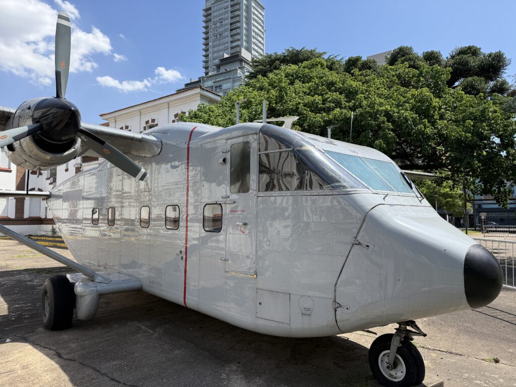 Ein unscheinbares Flugzeug und für die Geschichte Argentiniens doch so wichtig: Mit u.a. dieser Skyvan SC-7 wurden in der Zeit der Militärdiktatur (1976-83) die „vuelos de la muerte“ durchgeführt. Der Flieger hat hinten eine große Klappe, die man während des Fluges geöffnet hat, um sedierte politische Gefangene aus großer Höhe in den Rio de la Plata bzw. den Atlantik zu werfen, um sie und deren Körper verschwinden zu lassen. Das hat allerdings nicht immer vollständig geklappt, da manche Leichen an Land gespült wurden und man anhand der Verletzungen deren Todesart herausfinden konnte. Das Museo Sitio de Memoria ESMA, einer UNESCO Weltkulturerbestätte inmitten von Buenos Aires, zeigt auch das ehemals größte Folterzentrum Argentiniens innerhalb des Geländes dieser ehemaligen Technikschule der Marine, wo ca. 5.000 Menschen umgebracht wurden bzw. „verschwanden“. Schätzungen sprechen von bis zu 30.000 politischen Gefangenen, die während der Militärdiktatur ihr Leben lassen mussten.